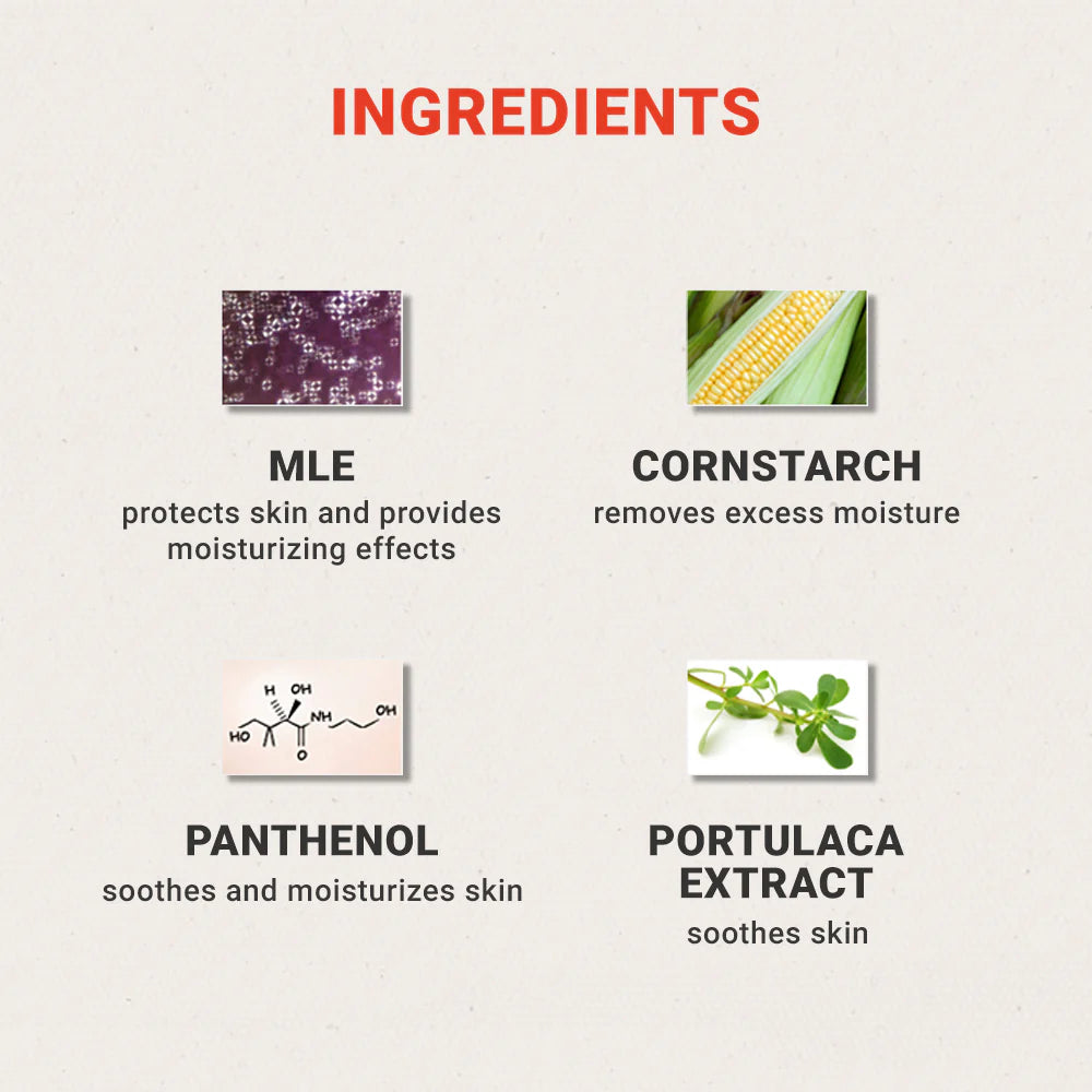 - Panthenol and Portulaca oleracea extract help relieve sweaty and stressed skin.