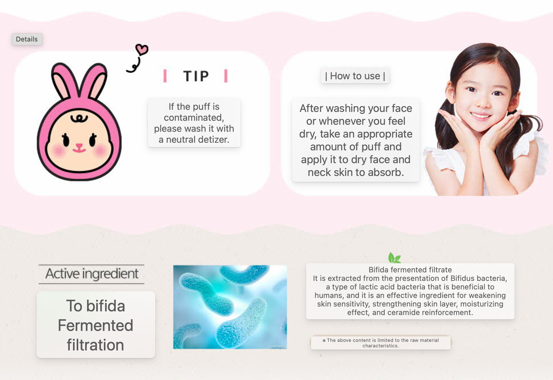 It is extracted from the presentation of Bifidus bacteria, a type of lactic acid bacteria that is beneficial to humans, and it is an effective ingredient for weakening skin sensitivity, strengthening skin layer, moisturizing effect, and ceramide reinforcement.