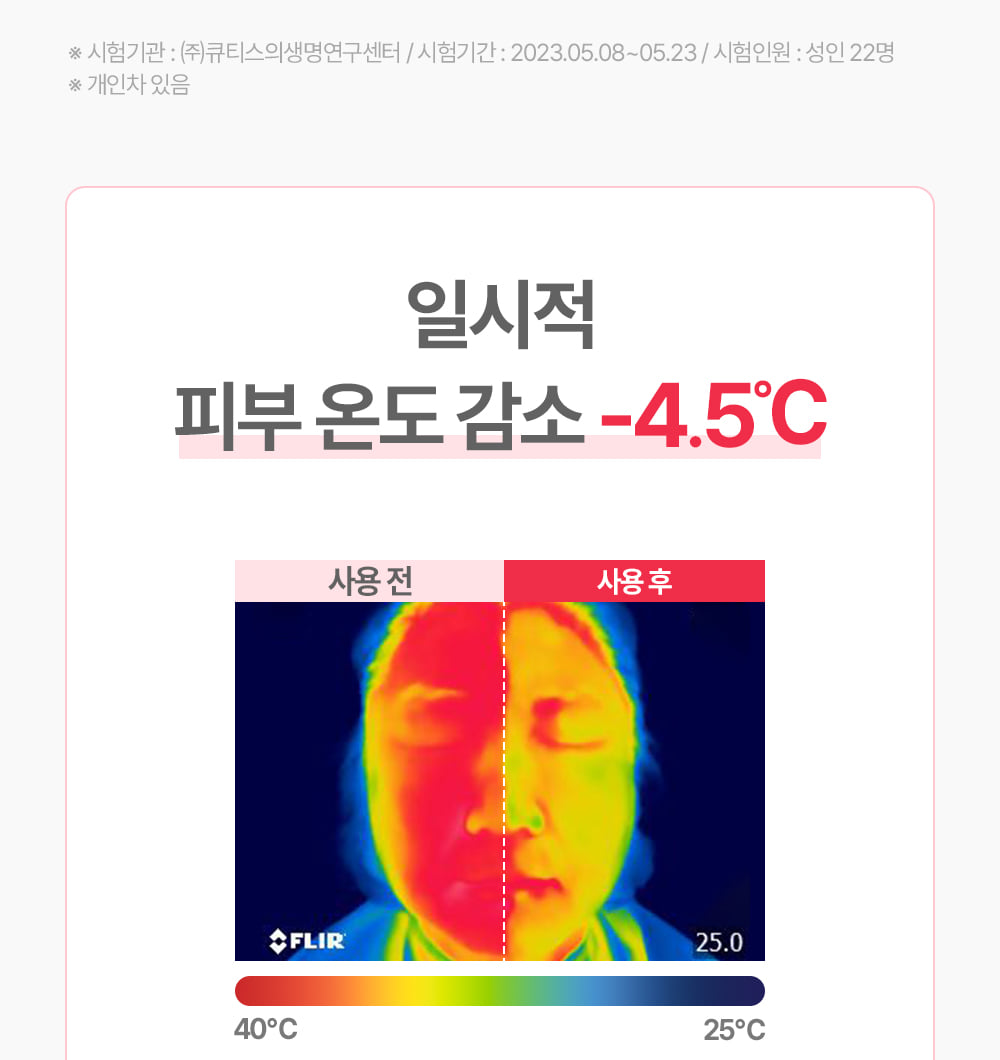 After use, it instantly reduces heat-induced irritation by 46.2% and skin temperature by 4.5℃.