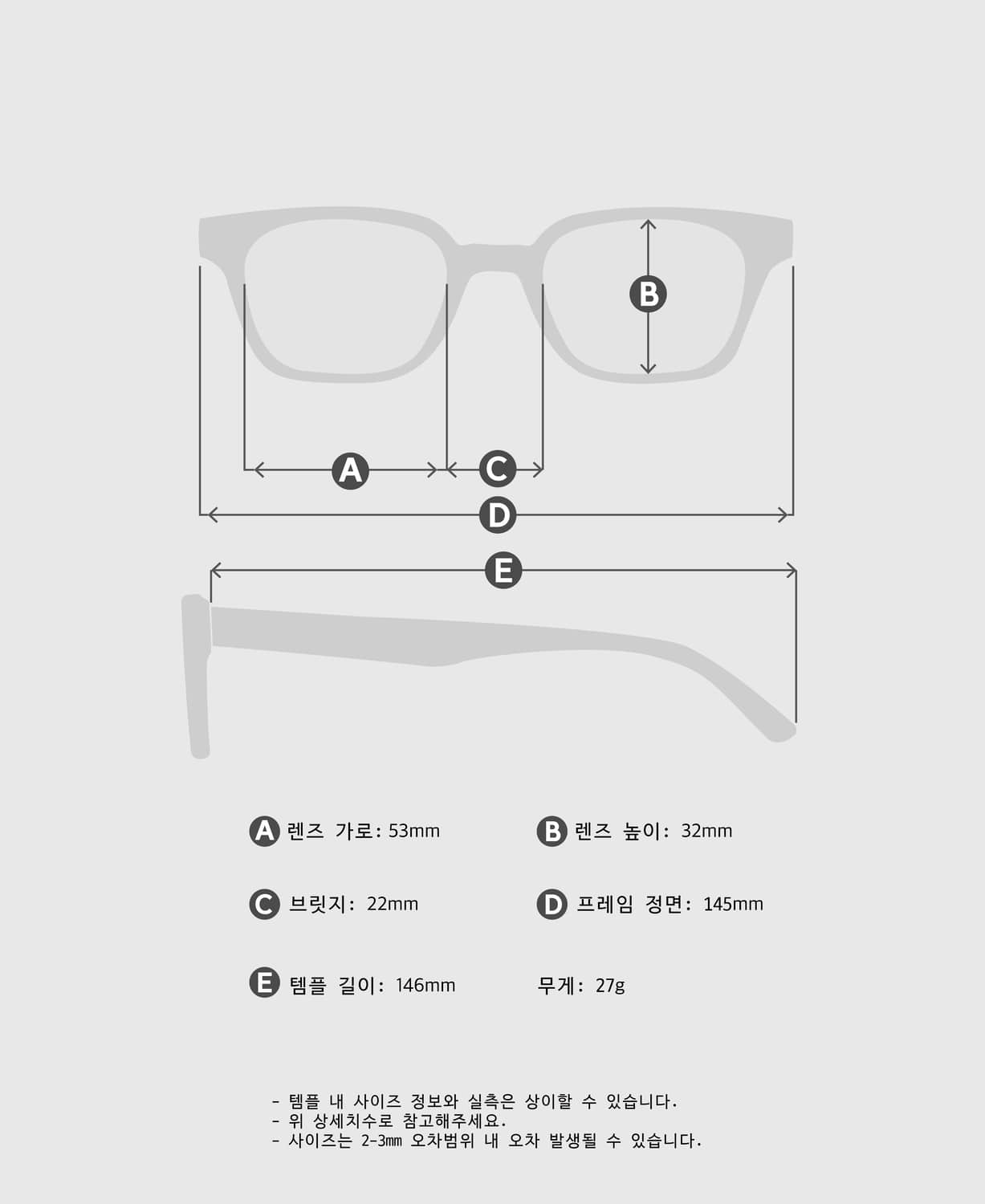 - The colour of the nose pad, rivet, and hinge screws may change to silver and gold depending on the production period as they are consumable materials. Please note that this is not a defect.