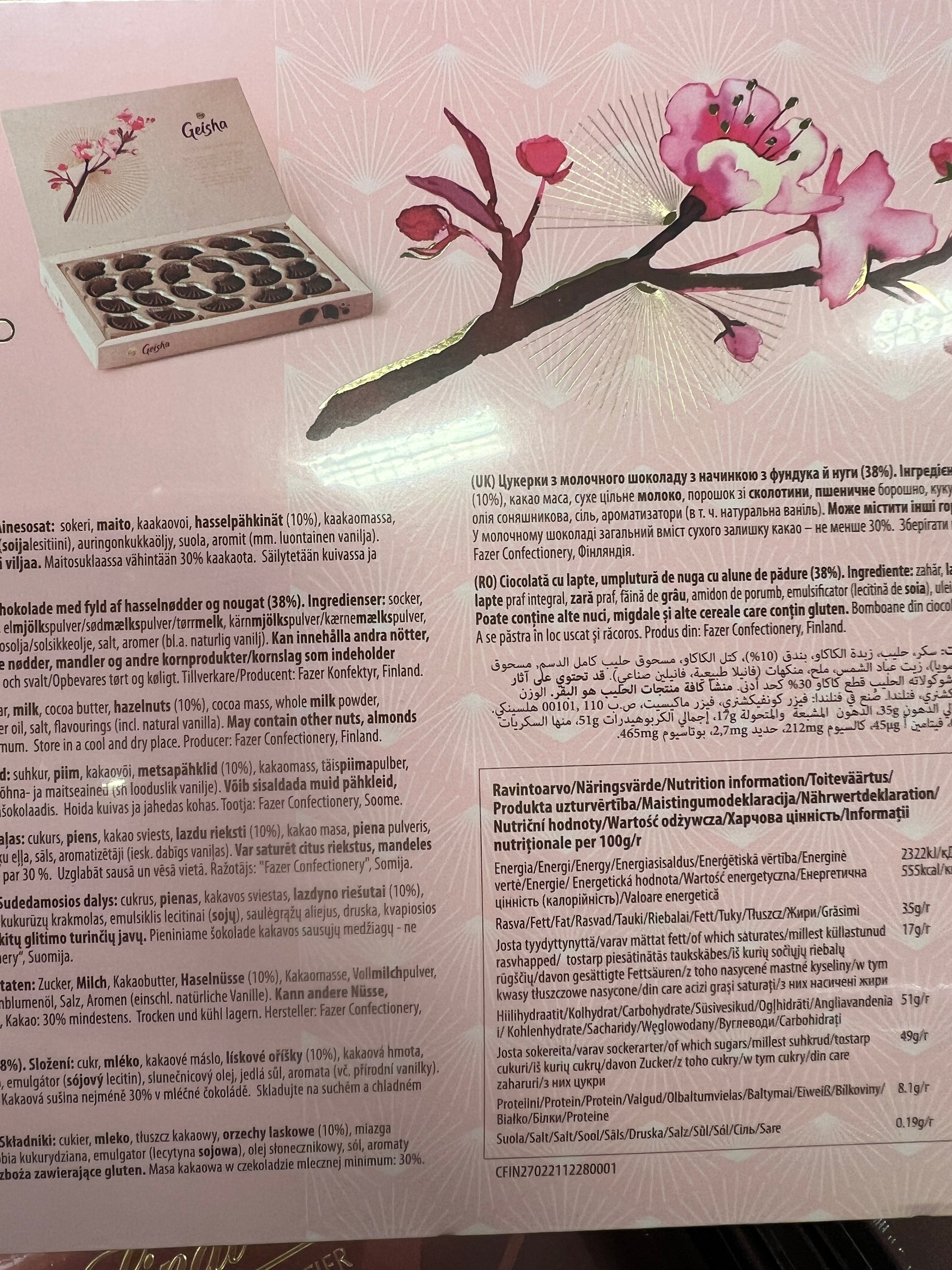 Fazer Geisha Milk Chocolate w/ soft Hazelnut filling Plate 185g
