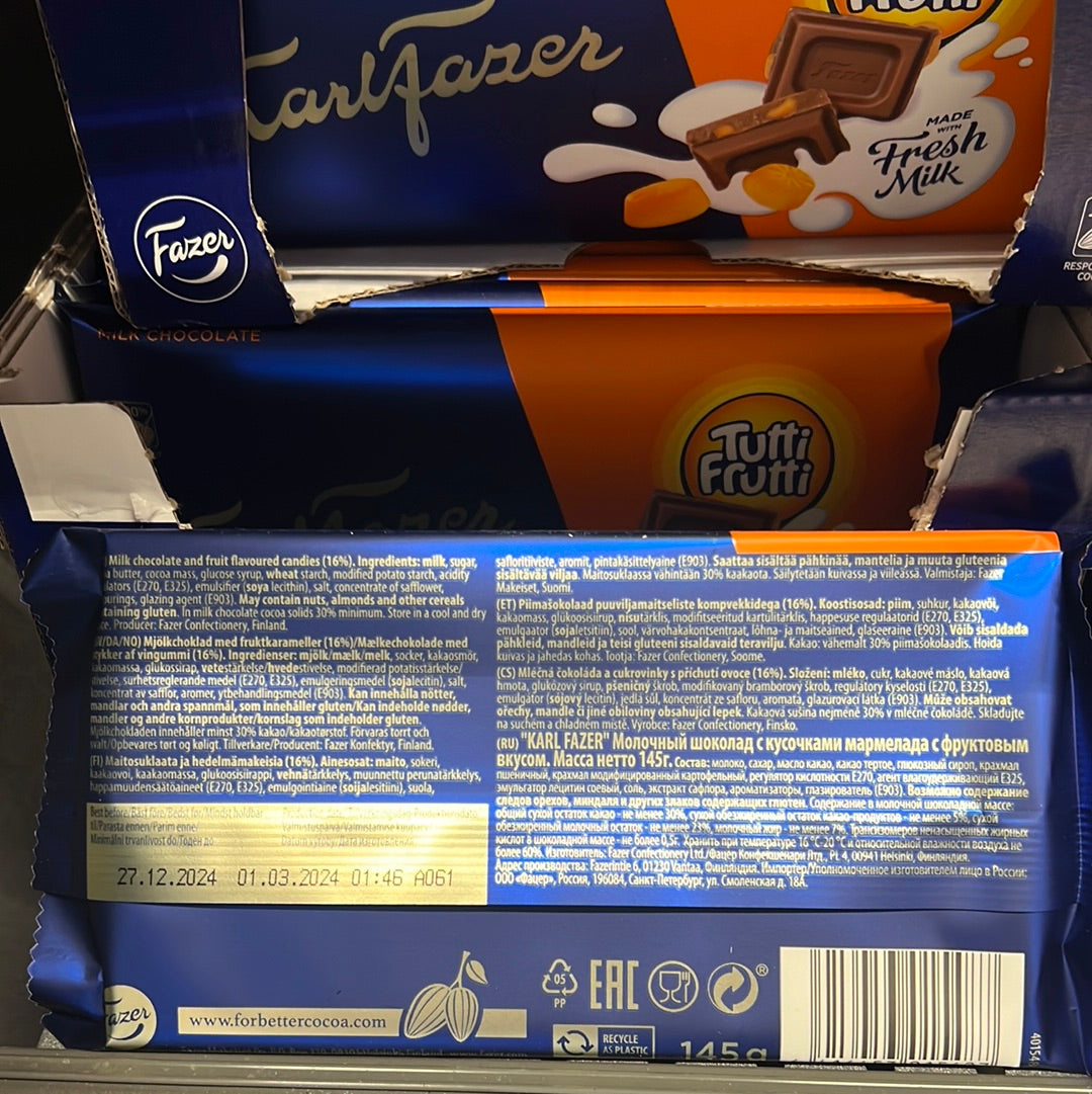 Fazer Milk Chocolate Tutti Frutti (Gummy) 145g
