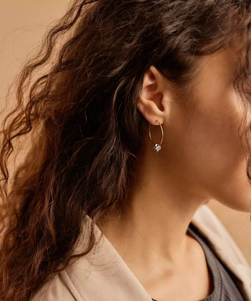 Designation: GT Ear Ring 25 mm, Round 8 mm, Black diamond