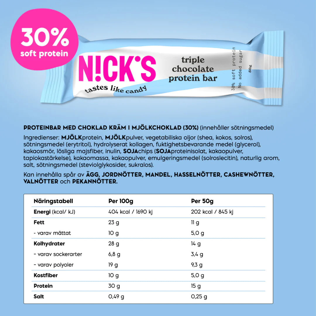 N!CK’S Protein Bar Triple Chocolates (15g Protein, SUGAR FREE) 3x50g