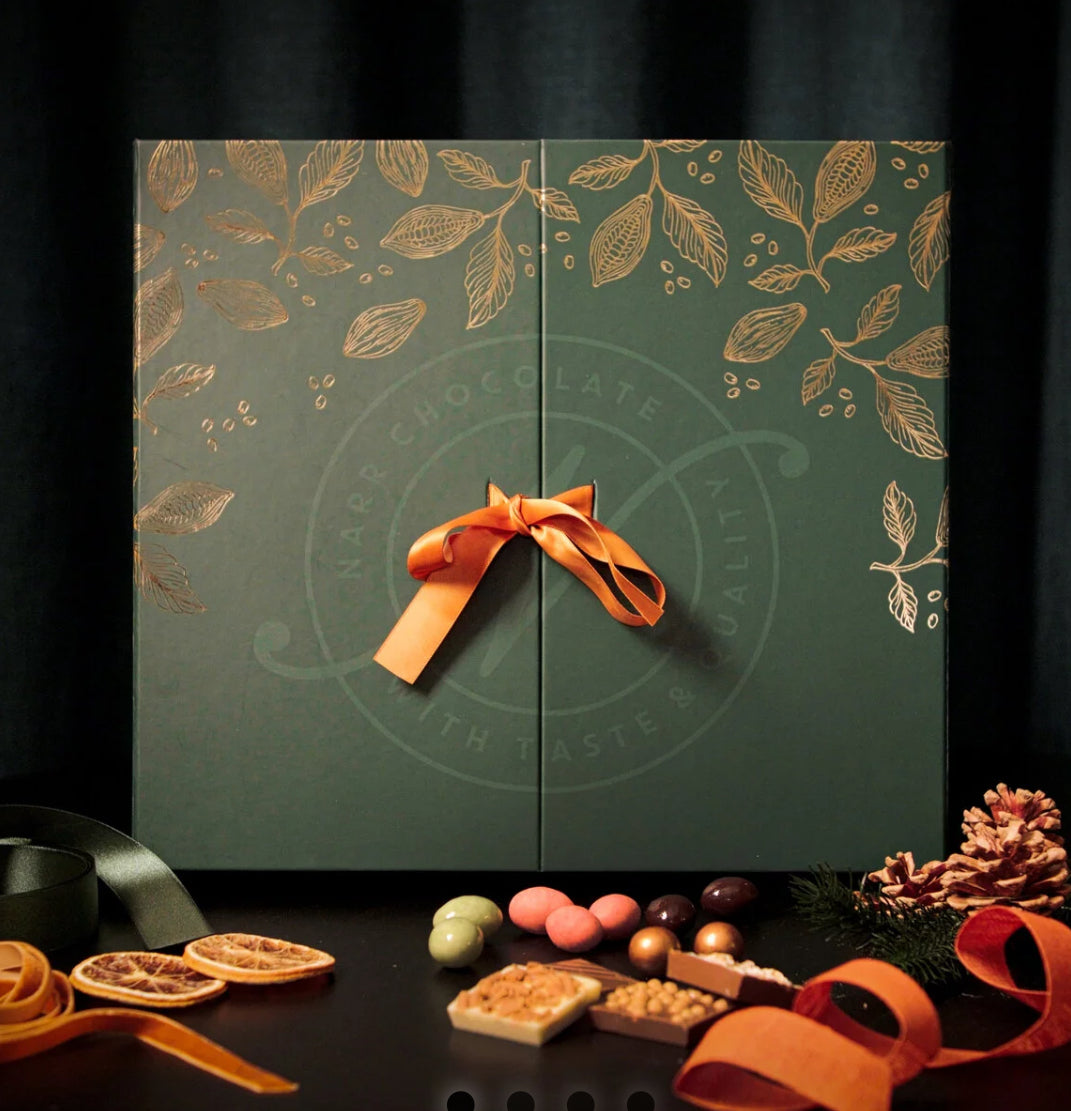 The 24 small boxes that are filled with chocolate and chocolate dragees can be reused to organize small things in the home or to collect all the children's small toys. Pleasure and benefit in a luxurious package.