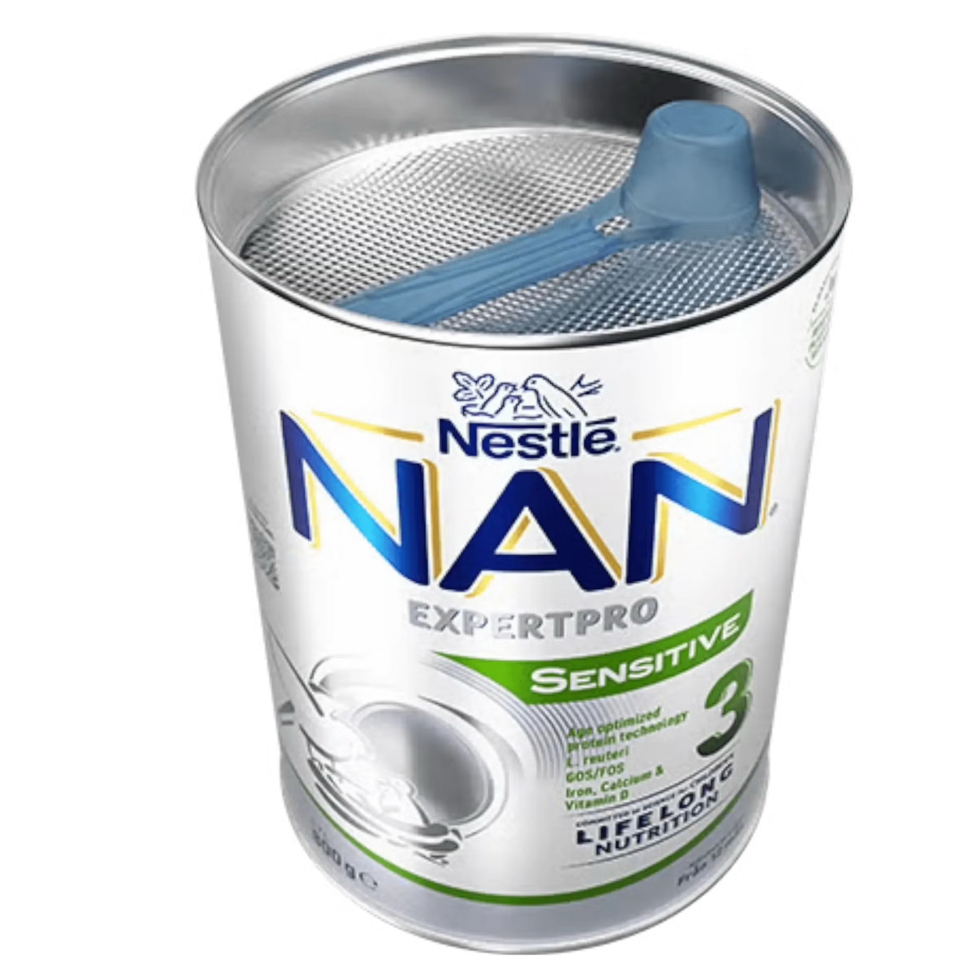 Nestlé NAN EXPERTPRO SENSITIVE 3 milk drink is adapted to the nutritional needs of healthy children from 12 months as part of a varied diet. Nestlé NAN EXPERTPRO SENSITIVE 3 milk drink contains the bacterial culture L. reuteri and the fibre mixture GOS and FOS. NAN EXPERTPRO SENSITIVE 3 for toddlers from 12 months is based on more than 60 years of research on breast milk.